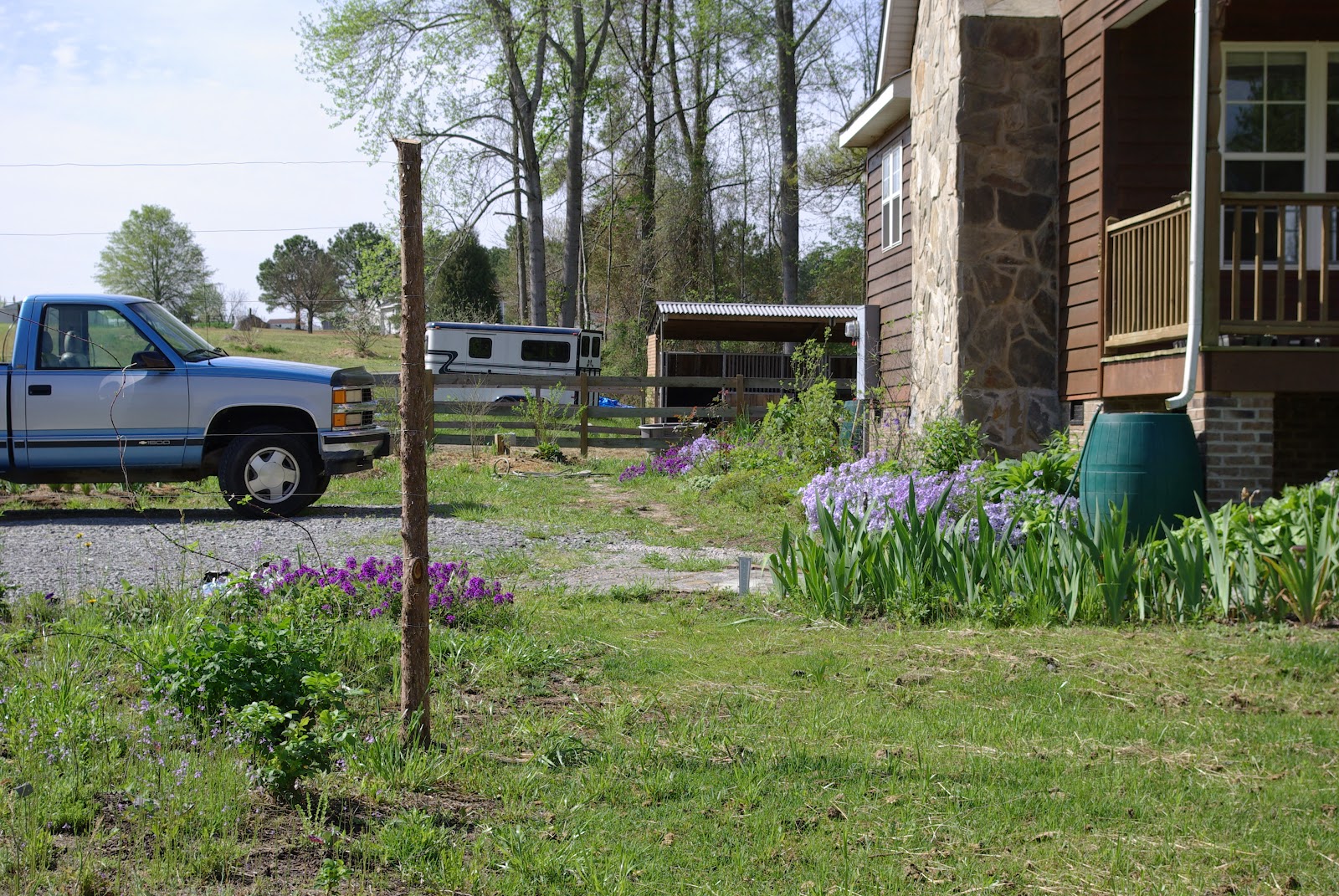 The vegetable garden is next to the parking area. I added a lot of ornamentals around the border of the vegetable garden last year, because a vegetable garden in midsummer in NC is not always a pretty sight.