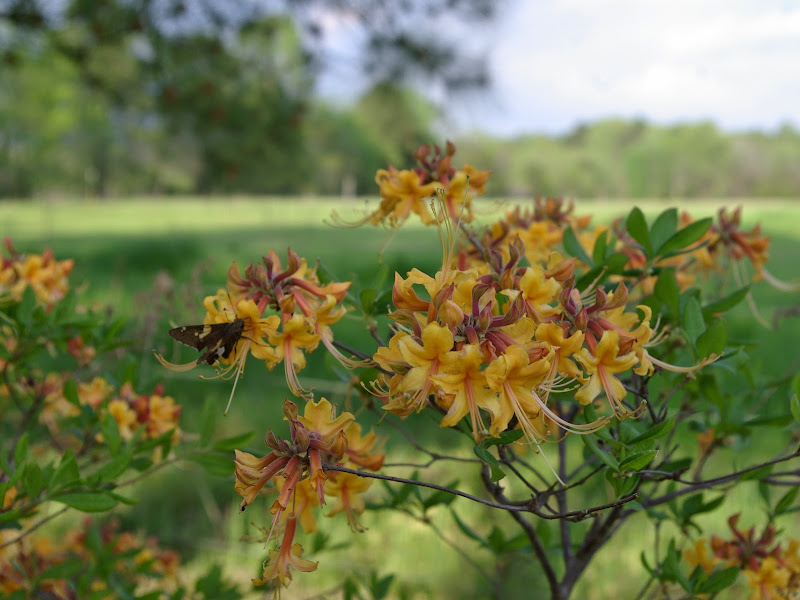 In the garden there is something new blooming every day. The pink and white Piedmont azaleas are finishing up and now the Pinxterbloom azaleas are open.